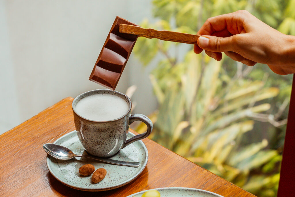 A loja conceito da Dengo Chocolates proporciona aos visitantes uma verdadeira aula sobre o processo de fabricação do chocolate e, claro, a oportunidade de experimentar as delícias da marca em sua cafeteria, a Fábrica de Dengo. Para o café da manhã, que acontece no 1º piso nos finais de semana e feriados, a Chef Sanae Mattos prepara um buffet que serve cuscuz de tapioca, banana da terra cozida, tapiocas e outras delícias que trazem os sabores da Bahia para a capital paulista.
