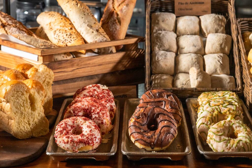 • Pães: pão de queijo, croissant, pain au chocolat, folhado de maçã, pão de cereais, pão francês, pão de azeitona, pão de forma branco e pão de forma integral;