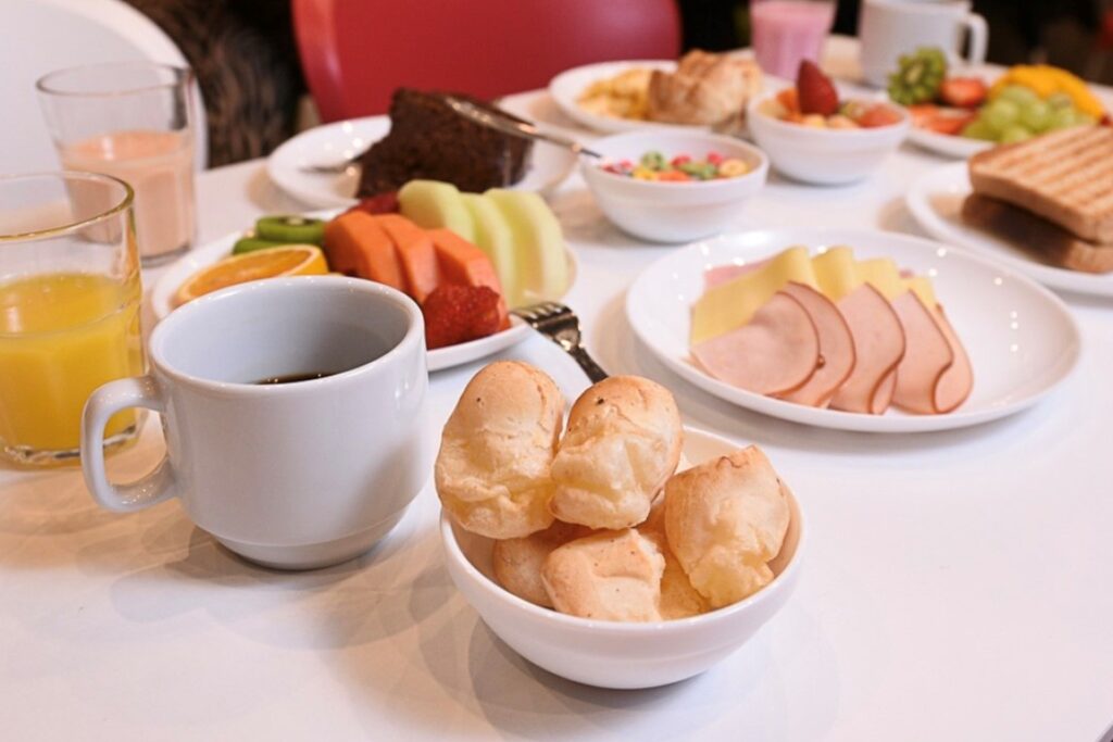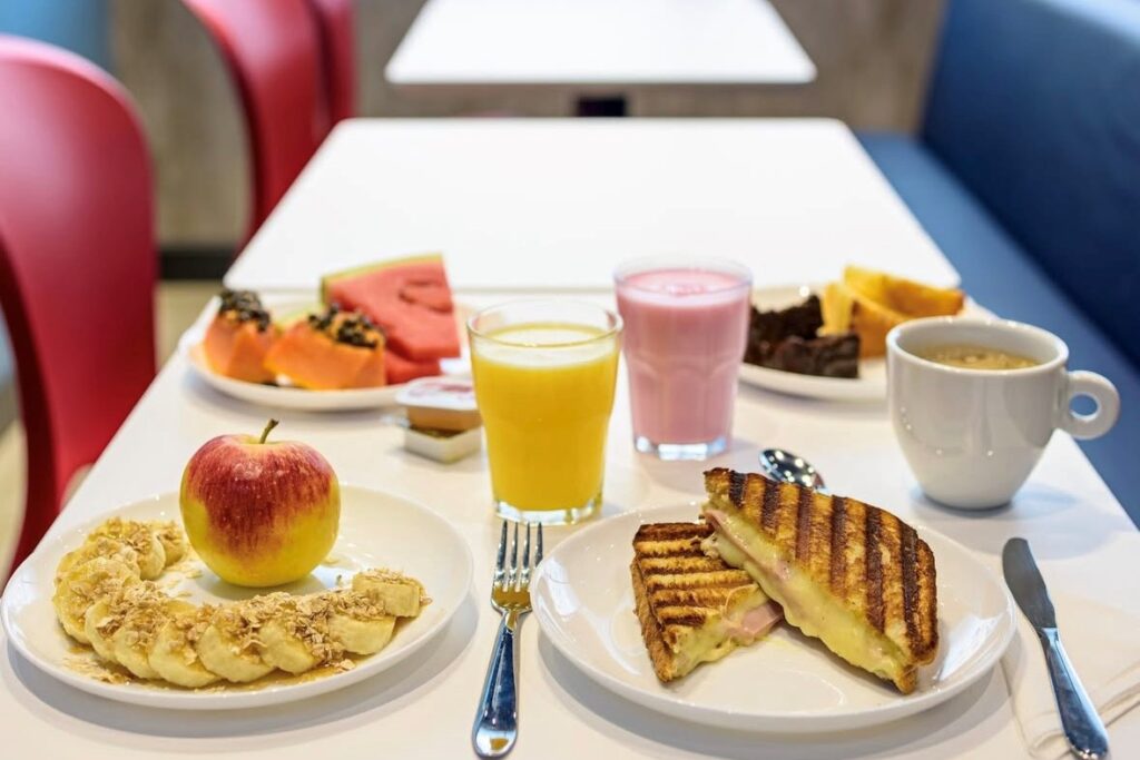 O Ibis Budget São Caetano do Sul oferece uma experiência de café da manhã simples, prática e saborosa, ideal para quem busca começar o dia com energia. O buffet conta com uma seleção de pães frescos, bolos caseiros, frutas da estação, cereais e opções de bebidas quentes, como café, leite e chá, além de sucos naturais para refrescar.