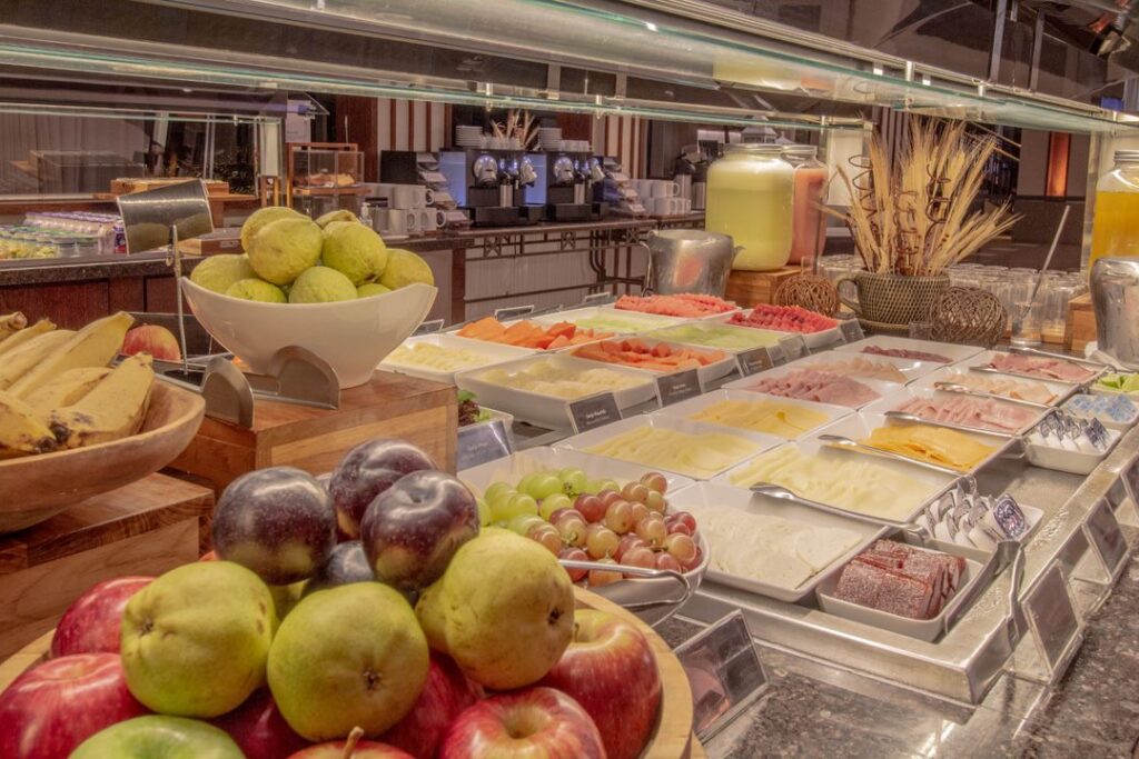 • Cozinha show, onde os hóspedes podem pedir e observar o preparo de tapiocas, ovos e omeletes, waffle, etc;
