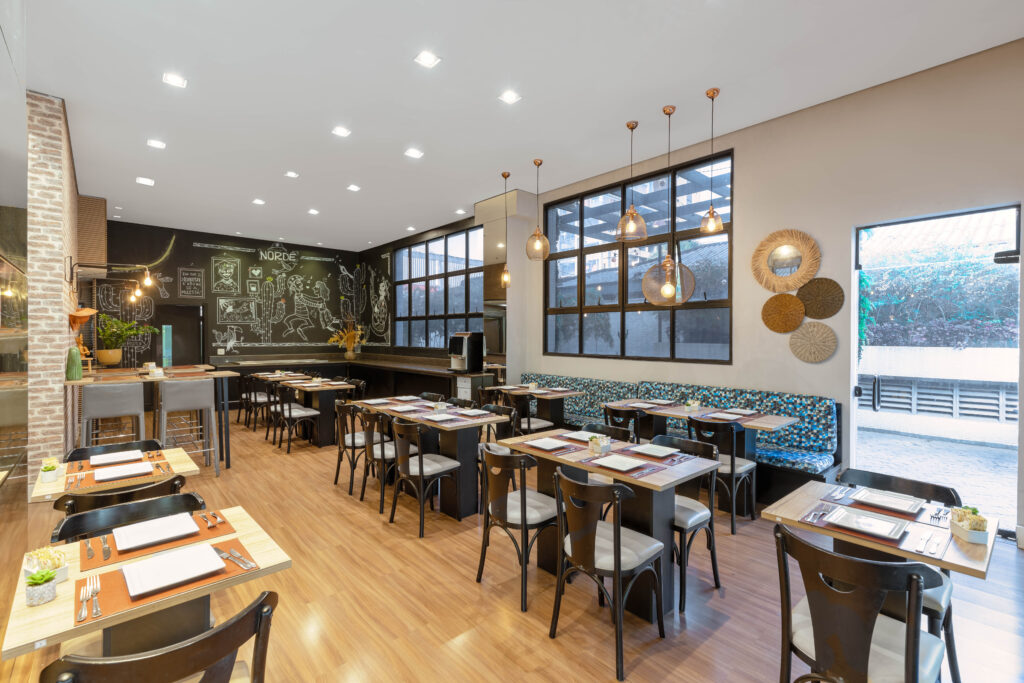 Ambientes com decoração contemporânea, muito conforto e atendimento cordial esperam por você no Mercure São Paulo Moema, próximo ao Parque Ibirapuera. Aqui, o café da manhã, sempre muito bem avaliado por hóspedes e visitantes, acontece no restaurante Nordê, que conta também com mesas ao ar livre.