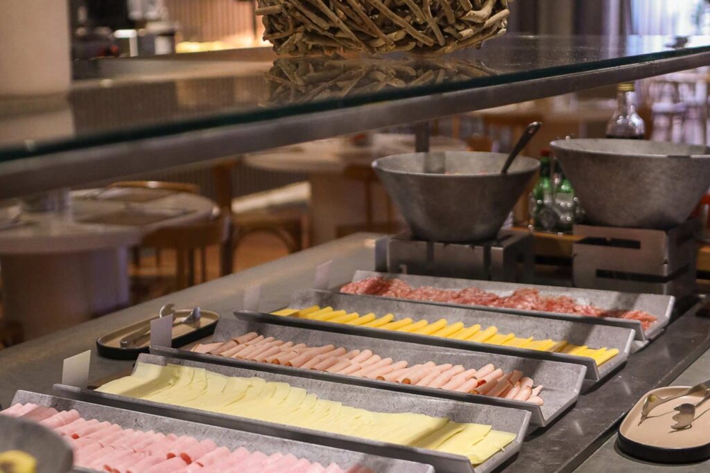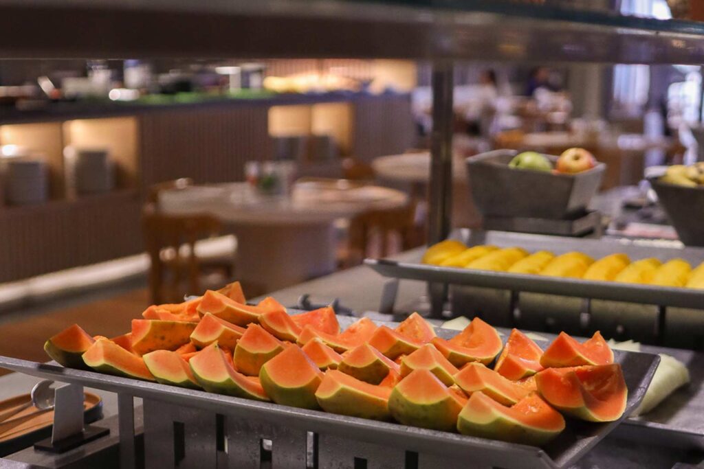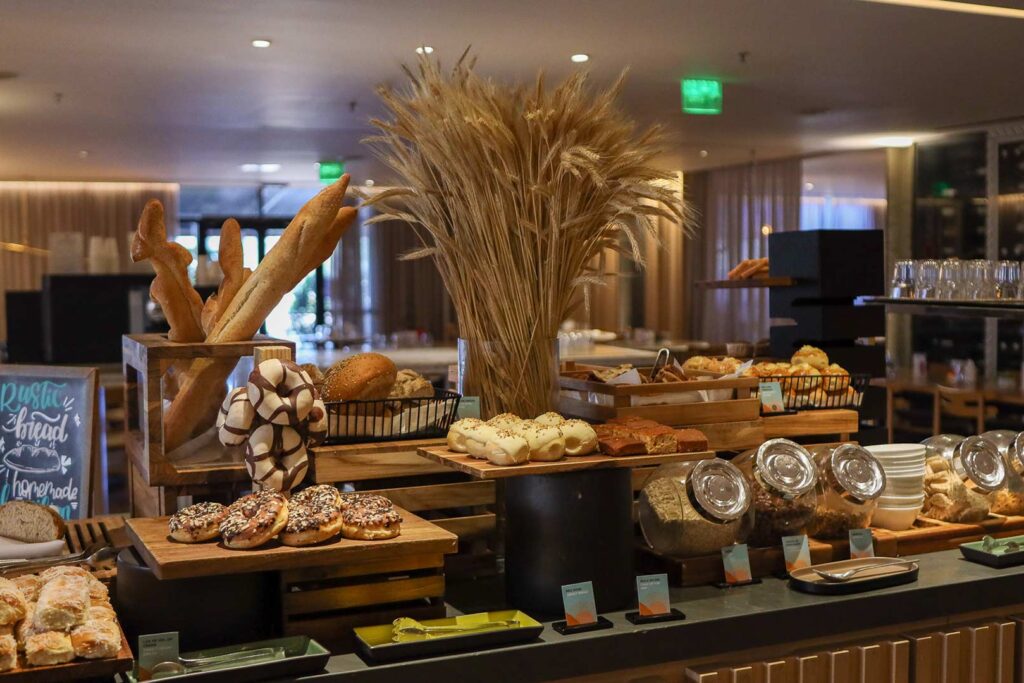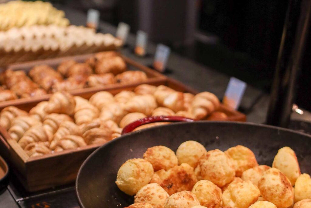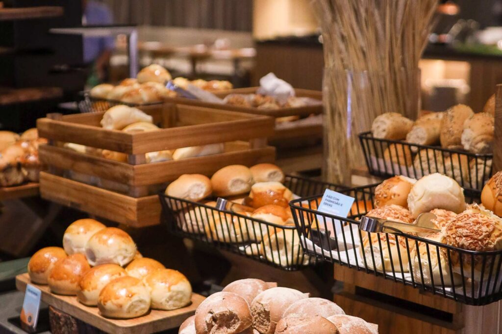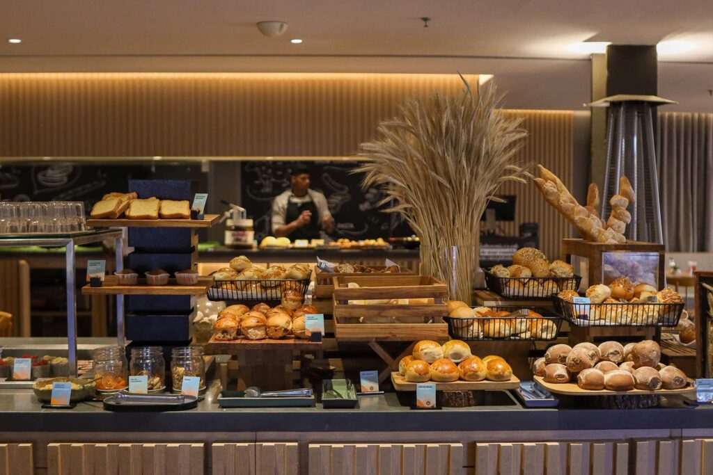No restaurante Base, o café da manhã se destaca com uma seleção diversificada de pratos e bebidas, ideal para energizar o dia com sabor e qualidade.