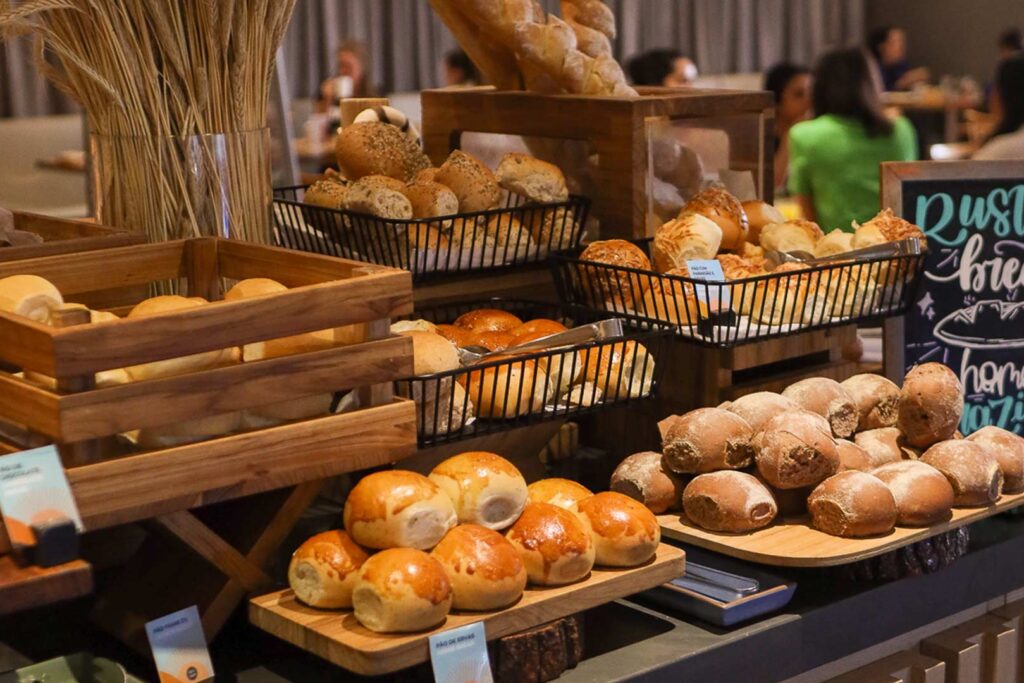 Pães artesanais produzidos na padaria do BASE;